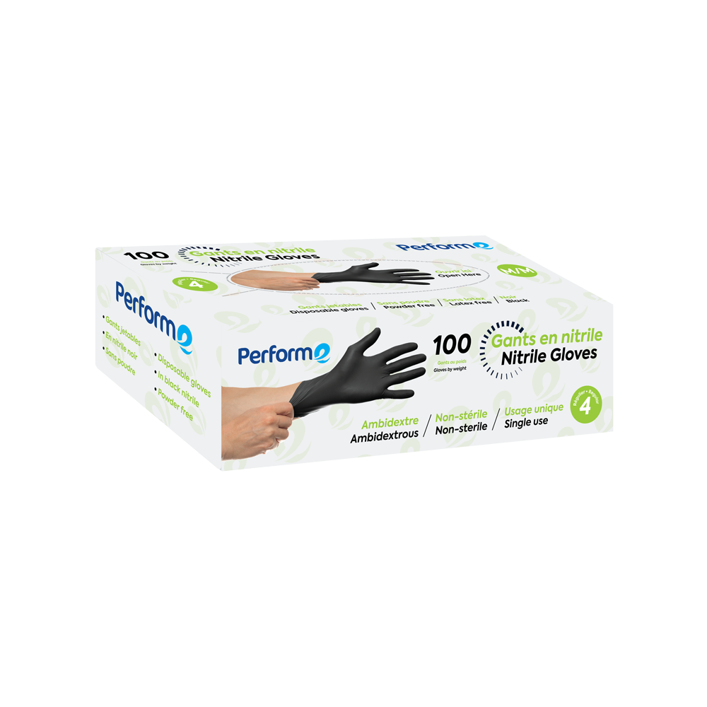 Gants de nitrile jetables noir 4 mil grandeur Moyen. 100 gants par boîte.